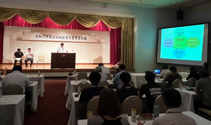 7月9日,阿久根市のABCパレスで,令和7年度出水地区青年農業者会議が58人の参加のもと開催されました。今年度は,「カンキツの腐敗果対策について」4人の共同プロジェクト発表や,「4H+1=私の思う4H」,「スマート農業を活用した労働環境の改善」についての意見発表がありました。いずれの発表に対しても,多くの質疑があり,大変意義のある時間となりました。農政普及課として,青年のプロジェクト活動支援を継続していきます。
