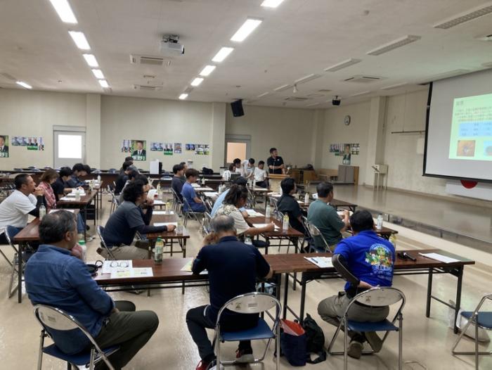 6月30日にJA鹿児島いずみ本所で,第1回果樹部門就農トレーナー研修が開催され28人が出席しました。基本技術研修後,全体研修で青年農業者4人が共同プロジェクト活動の取組を発表し,不知火および甘夏の腐敗果防止対策について事例を紹介しました。腐敗果防止対策上の手法や出荷販路,課題など,情報交換や質疑応答が活発に行われました。農政普及課は,青年農業者のプロジェクト活動による担い手育成支援や腐敗果対策技術の波及等を今後も進めていきます。