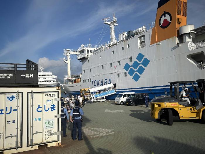 また、鹿児島港では、悪石島や小宝島からの避難住民を乗せたフェリーが到着し、鹿児島中央警察署の署員が見守り活動を行いました。